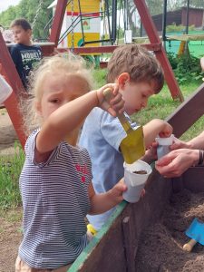 25.09. – p. Magda i p. Angelika przygotowały atrakcyjne aktywności dla przedszkolaków dla ogrodzie przedszkolnym. Była to również okazja do podsumowania konkursu plastycznego „Jesienne stworki” .